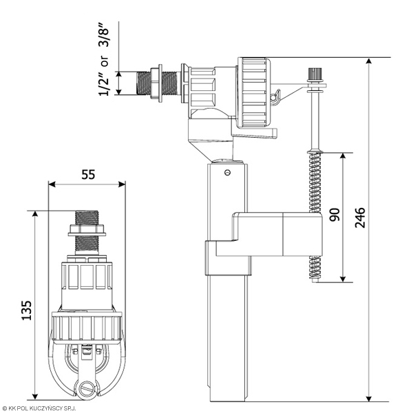 Поплавок с боковым подводом, нерж, 1/2
