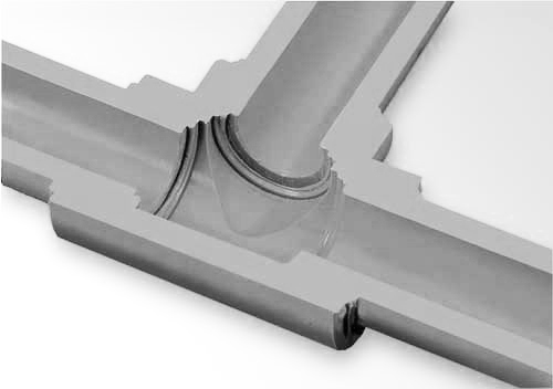 Теперь перейдем к полипропилену. Полипропилен между собой соединяется с помощью пайки – труба в трубе. В результате пайки получается монолитное соединение, полностью состоящее из полипропилена, не имеющее заужения диаметра, а также это соединение можно убирать в стену и монолитить.