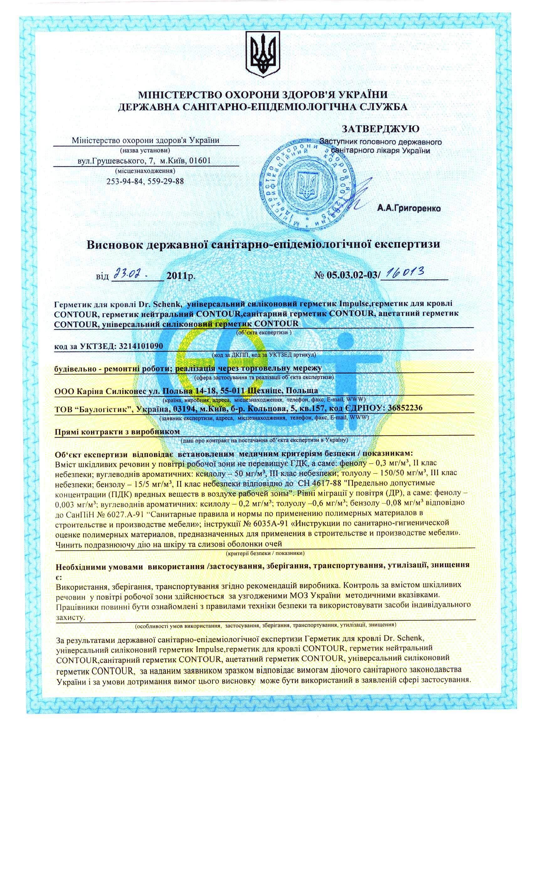 Гигиен. заключение на герметики Карина Силиконес (Польша) лист1 СКАЧАТЬ Гигиен. заключение на герметики Карина Силиконес (Польша) лист2 СКАЧАТЬ