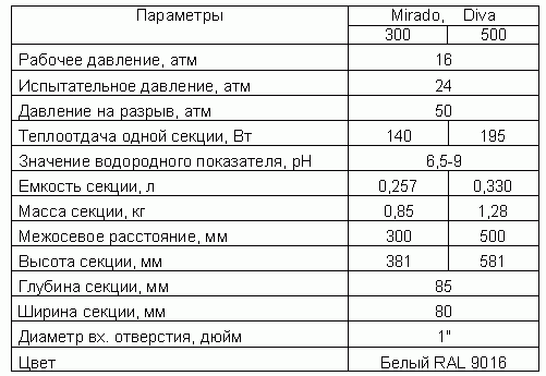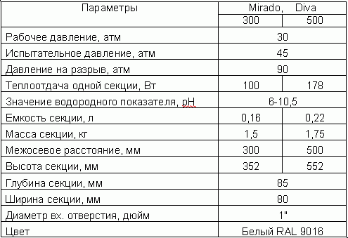 ДОСТОИНСТВА БИМЕТАЛЛИЧЕСКИХ РАДИАТОРОВ MIRADO И DIVA: