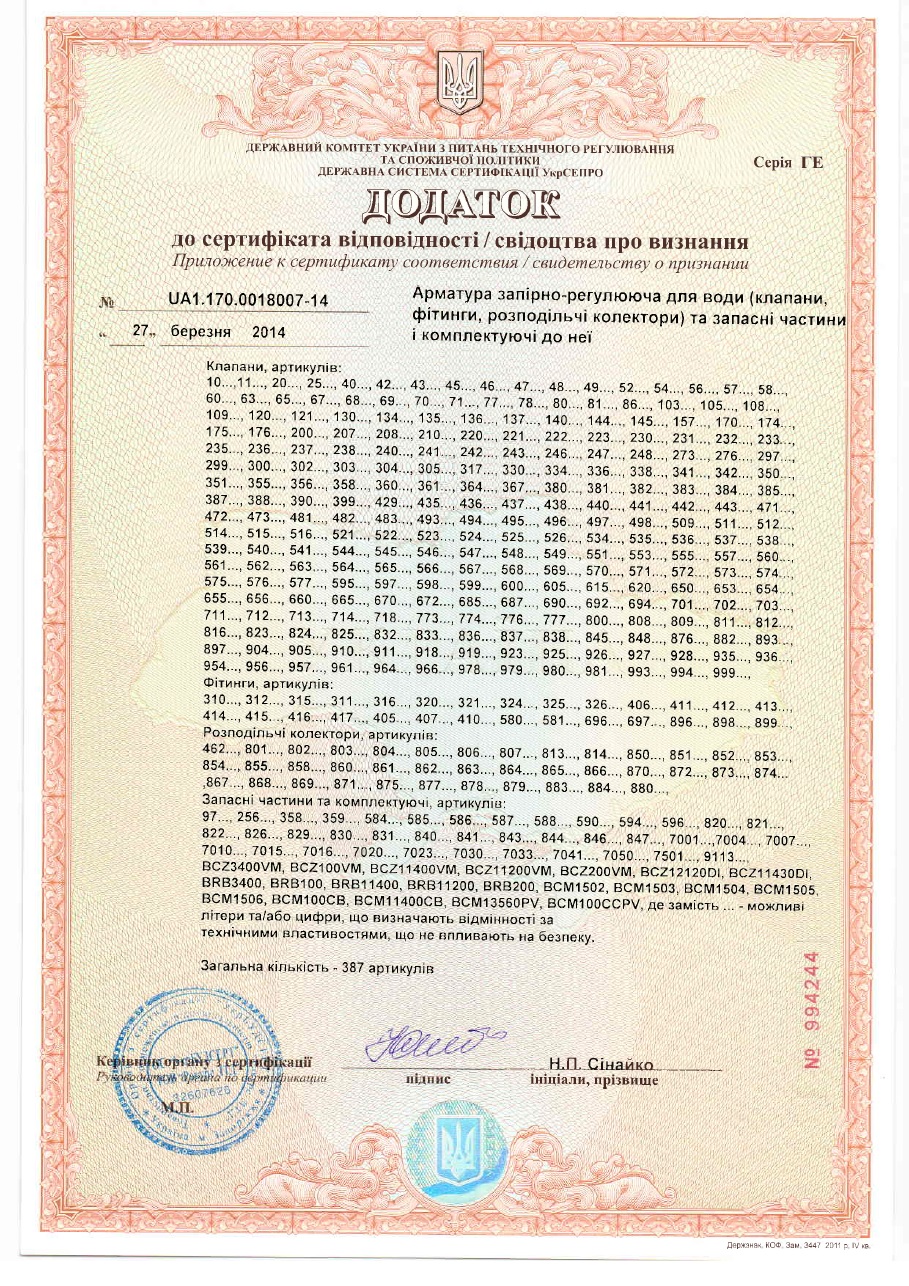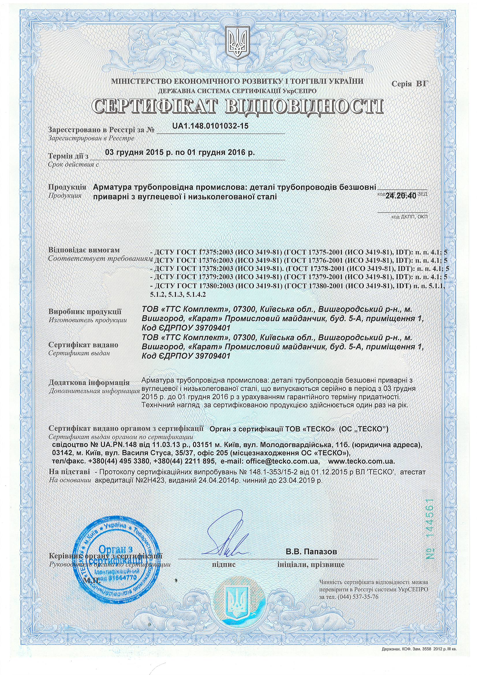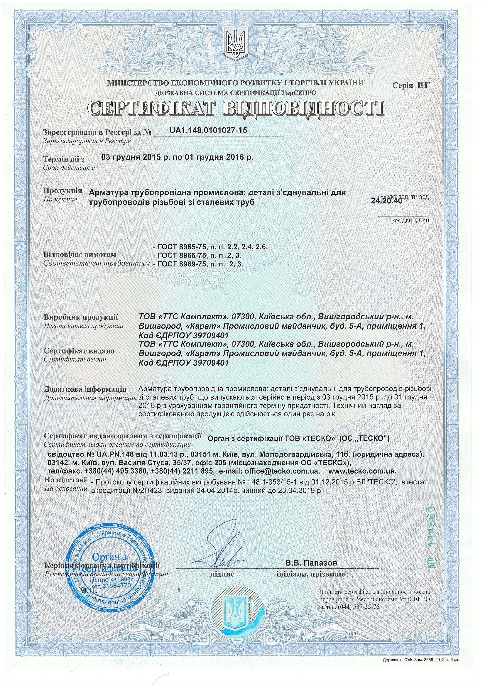 Сертификат на арматуру трубопроводную промышленную ТТС Комплект (Украина)СКАЧАТЬ Сертификат на арматуру трубопроводную промышленнуюТТС Комплект (Украина)СКАЧАТЬ