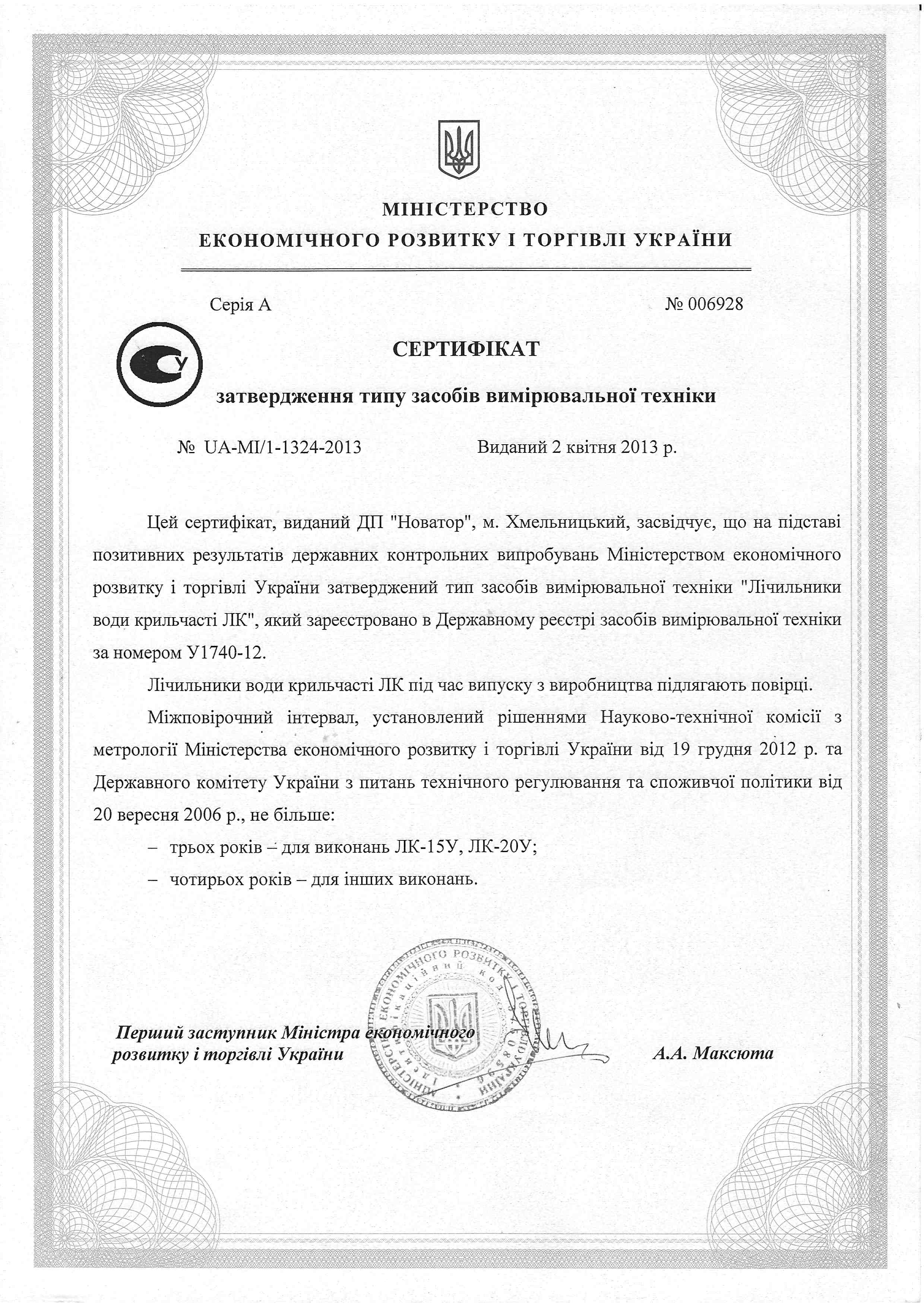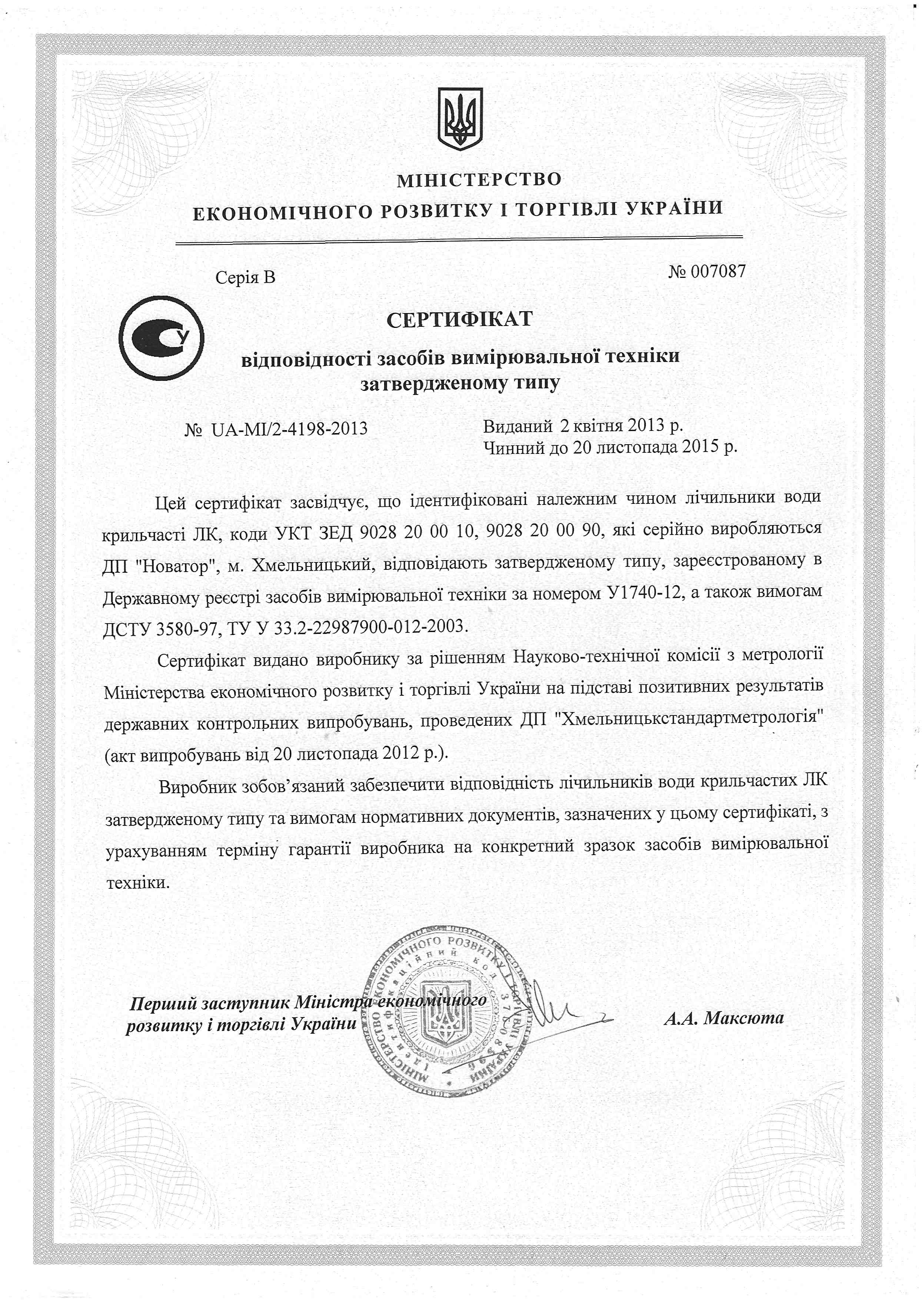 Сертификат утверждения на счетчики воды Новатор (г. Хмельницкий, Украина)СКАЧАТЬ Сертификат соответствия на счетчики воды Новатор (г. Хмельницкий, Украина)СКАЧАТЬ